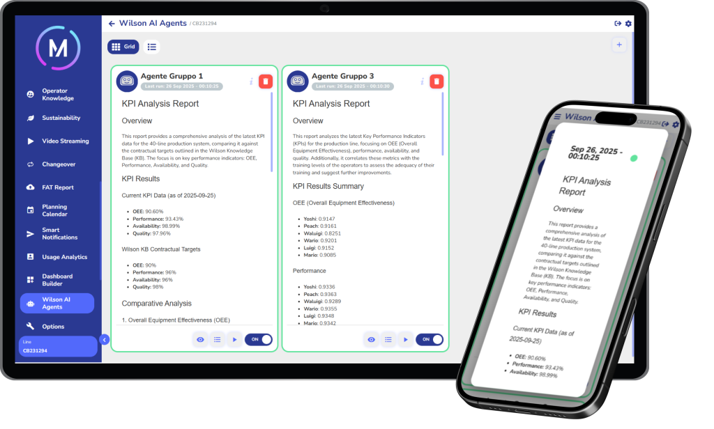 Wilson.ai Agents connect MAT’s data with the conversational interaction capabilities of Wilson.ai Conversational, creating a platform that not only collects and analyzes data, but also acts autonomously to solve problems, suggest actions, and improve operational efficiency, all in a seamless and continuous workflow.